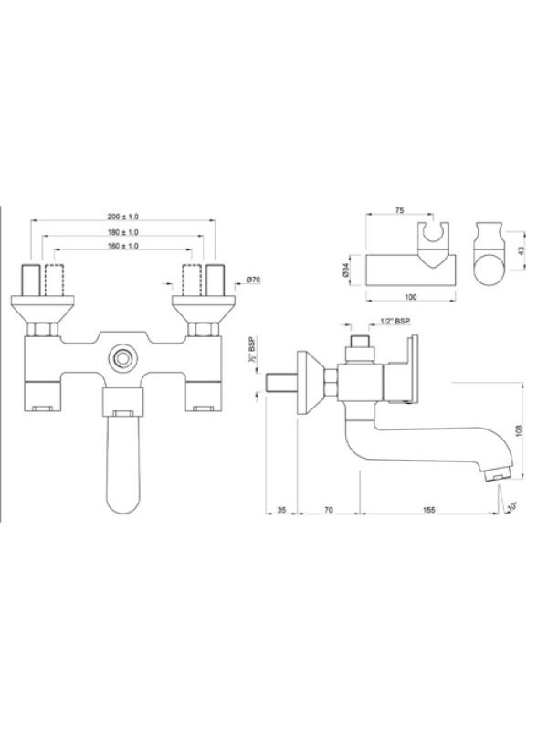 Wall Mixer with Hand Shower Arrangement with Connecting Legs, Wall Flanges & Wall Bracket for Hand Shower