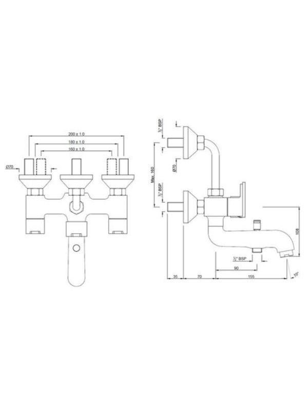 Wall Mixer 3-in-1 System with provision for both Hand Shower and Overhead Shower Complete with 115mm Long Bend Pipe, Connecting Legs Wall Flange (without Hand & Overhead Shower)