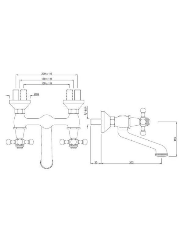 Wall Mixer Non-Telephonic Shower Arrangement with Connecting Legs & Wall Flanges