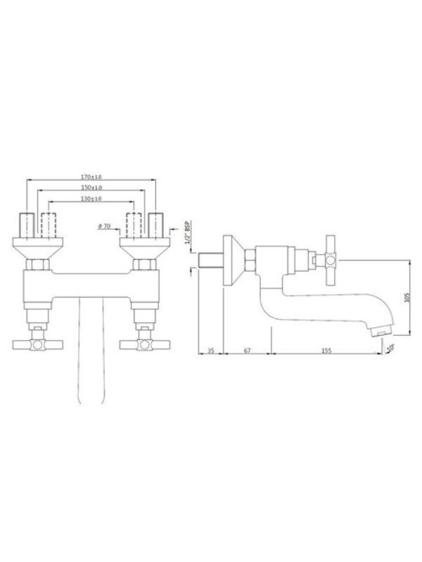 Wall Mixer Non-Telephonic Shower Arrangement with Connecting Legs & Wall Flanges