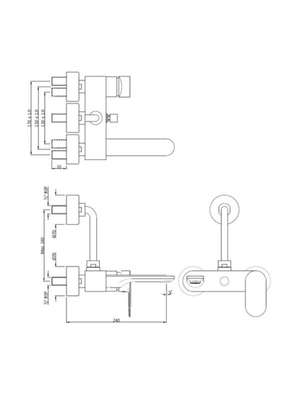 Single Lever Wall Mixer with Provision For Overhead Shower with 115mm Long Bend Pipe On Upper Side, Connecting Legs & Wall Flanges