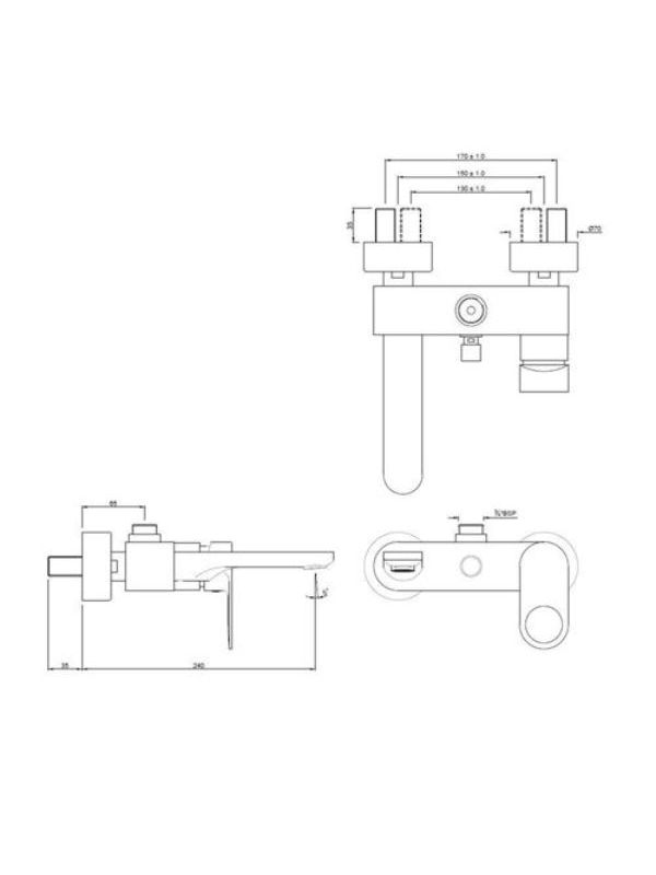 Single Lever Wall Mixer with Provision For Connection to Exposed Shower Pipe (SHA-1211) with Connecting Legs & Wall Flanges