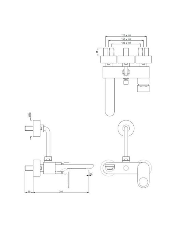 Single Lever Wall Mixer with Provision For Overhead Shower with 115mm Long Bend Pipe On Upper Side, Connecting Legs & Wall Flanges