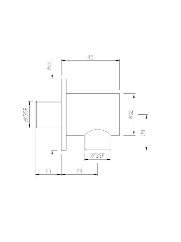 Wall Outlet Dia 30mm, 40mm Long Round Shape with 15mm Thread To Connect Hand Shower Pipe and Flange.