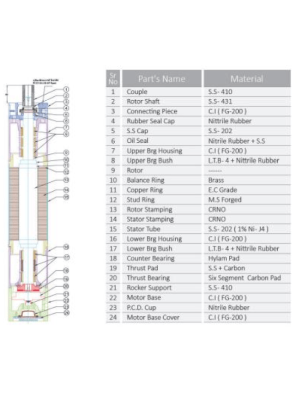 Borewell Size: 150mm.
